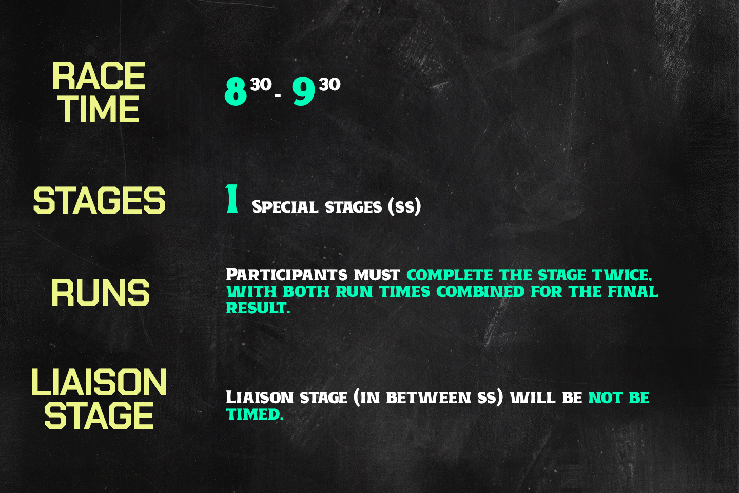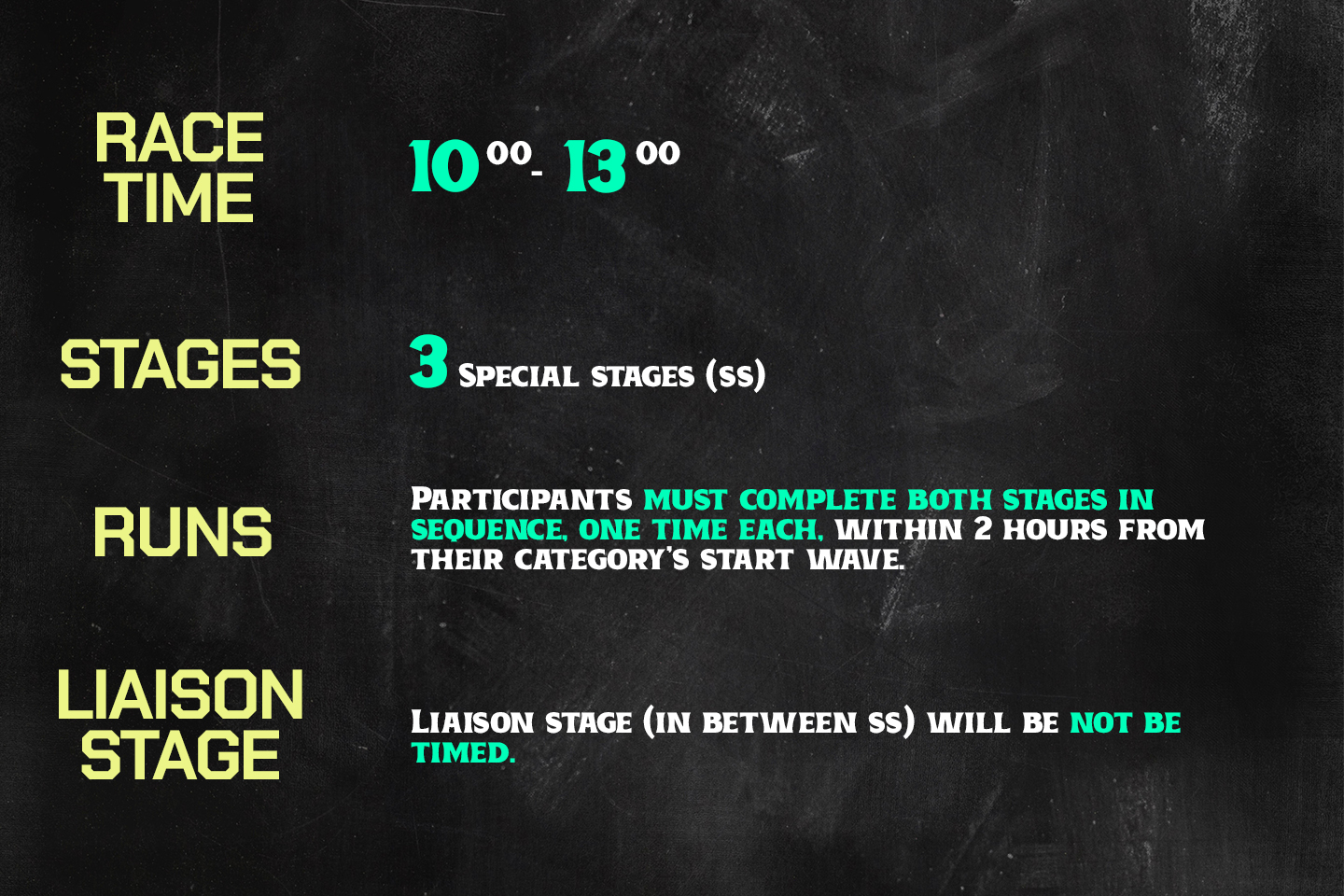 Participants must compete in the same category for all 3 rounds to qualify for overall points accumulation.
